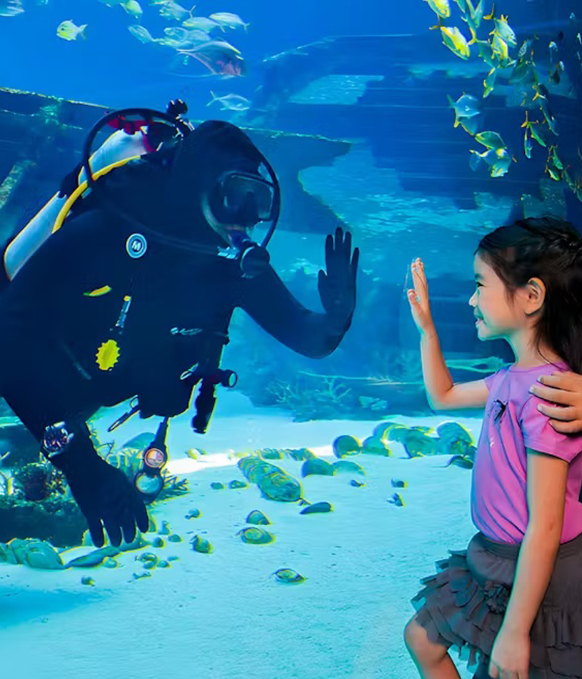بله، این مجموعهی عظیم و بازسازی شده، فقط جایی برای دیدن گونههای مختلف دریایی نیست؛ بازدیدتان را با ماجراهای غوطهور کنندهای مثل تجربهی داخلی اقیانوسنمای سنگاپور و برنامهی آموزش غواصی PADI Discover Scuba Diver غنی کنید. همچنین این مکان یک مرکز عالی برای آموزش است، چون پایگاهی برای حفاظت دریایی، تابآوری اقلیمی و علوم اقیانوس به شمار میرود که با همکاری دانشگاه ملی سنگاپور و دانشگاه فناوری نانیانگ پشتیبانی میشود.