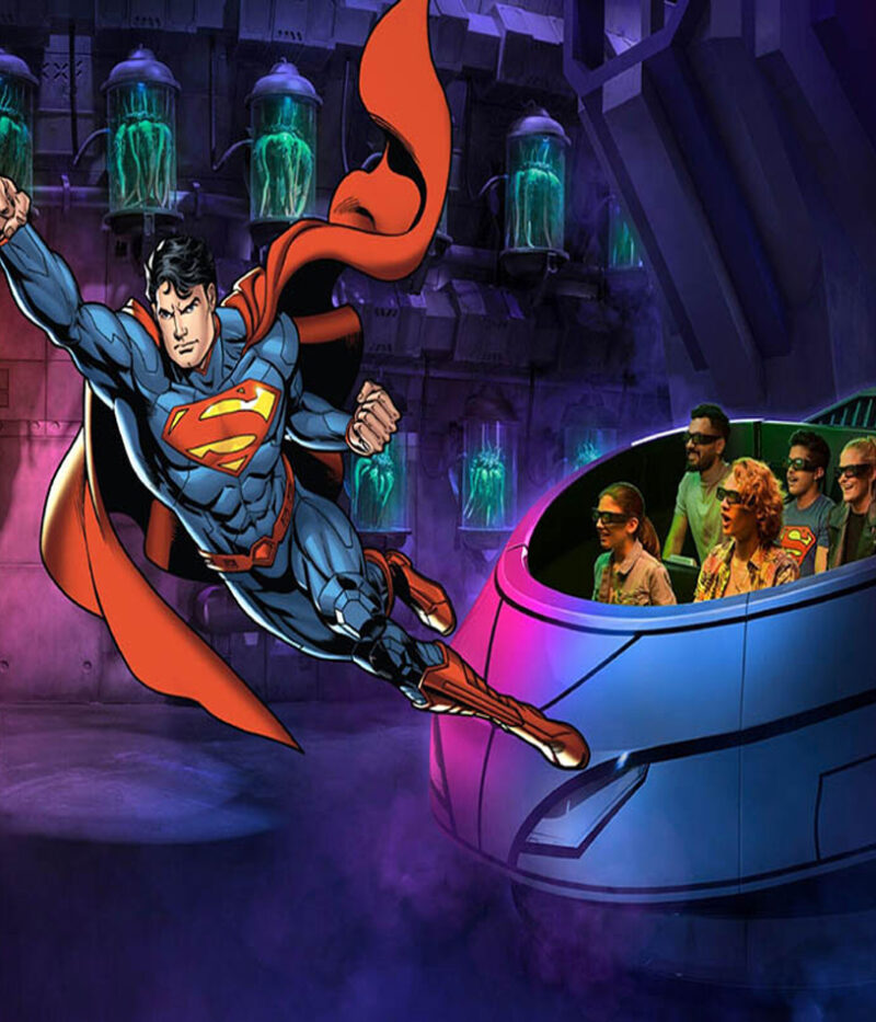 خانه سوپرمن و لیگ عدالت، جایی که بازدیدکنندگان میتوانند با قهرمانانی همچون واندر وومن، فلش و گرین لنترن همراه شوند و در سواریهای نجات متروپلیس یا شبیهساز پرواز سوپرمن شرکت کنند.
