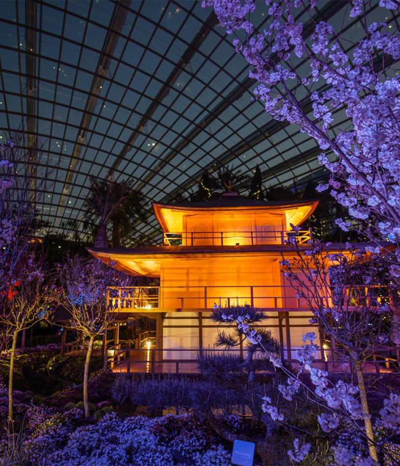 - تجربه عالی در هنر باغبانی و هورتیکالچر با بازدید از سه گلخانه کنترلشده: Flower Dome، Floral Fantasy و Cloud Forest که یکی از بزرگترین آبشارهای جهان را در خود جای داده است.