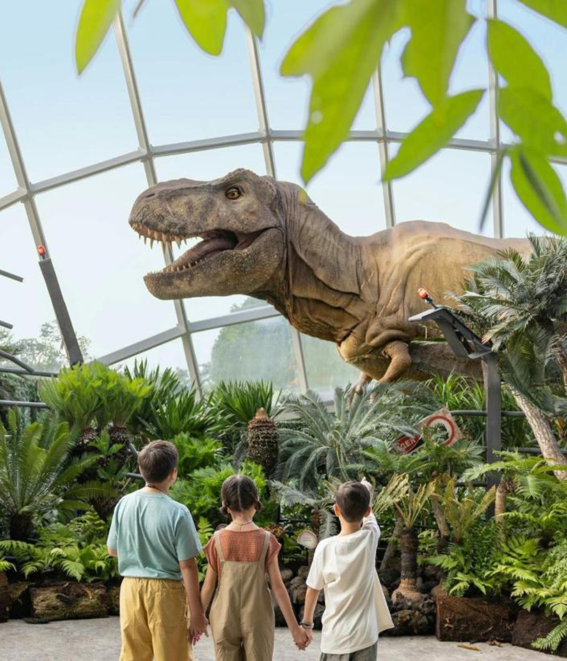 - دنیای ژوراسیک: جایی که میتوانید در میان گیاهان شگفتانگیز، با دایناسورهای عظیمالجثهای چون براکیوزاروس روبهرو شوید، با یک تیرکس ترسناک از نزدیک مواجه شوید و شاهد زندگی دایناسورها کوچک و بامزه باشید.